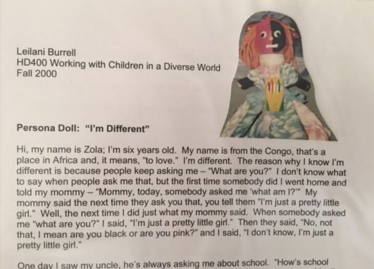 When I was a student at Pacific Oaks College in Pasadena more than 20 years ago, studying for my undergraduate degree in human development, I was assigned to create a "persona doll."